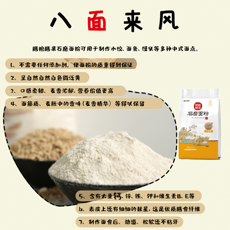 | 梁山膳粮膳果农业发展有限公司成立于2018年,位于素有“梁山县粮仓美誉”的馆驿镇。公司主要从事农作物种植、农产品加工、销售、农业技术服务等。2021年,公司创建了3000亩绿色食品原料标准基地,种植了紫小麦、蓝小麦等新特小麦品种。随着社会的不断进步,结合大众健康饮食的需求,公司投资360万余元建设了石磨面粉加工项目,开发出小麦石磨面粉,紫小麦石磨面粉,蓝小麦石磨面粉等产品,深受消费者青睐。 | ||